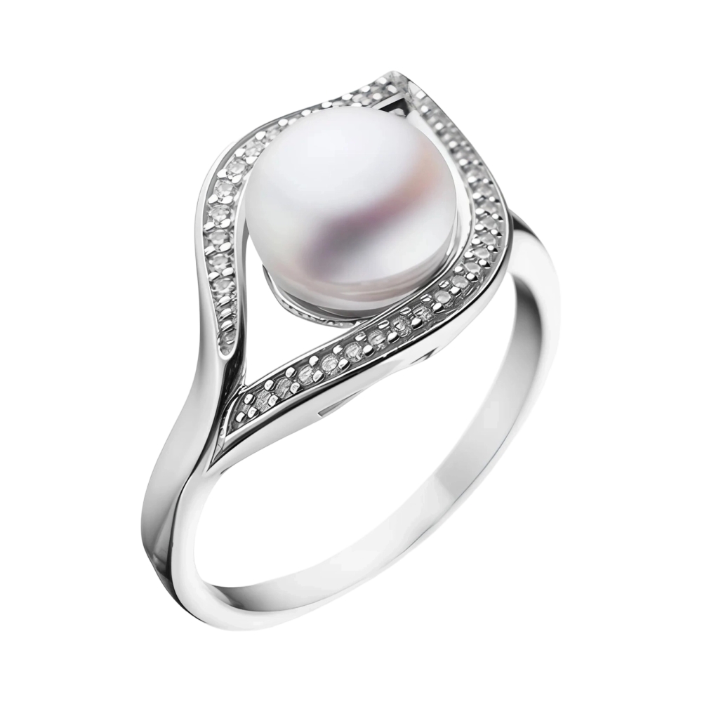 Кольцо из серебра с жемчугом и фианитами
