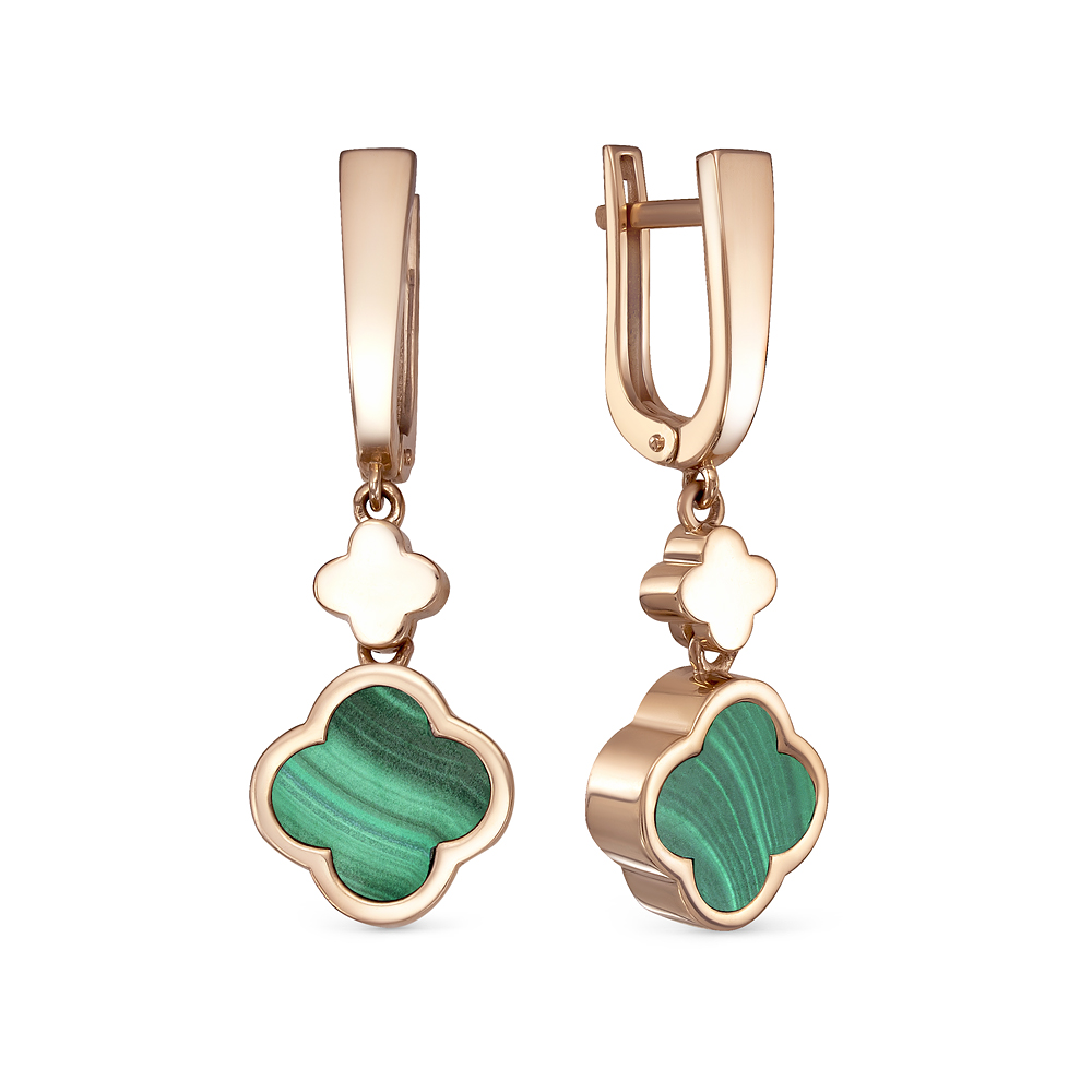 Серьги из красного золота с малахитом
