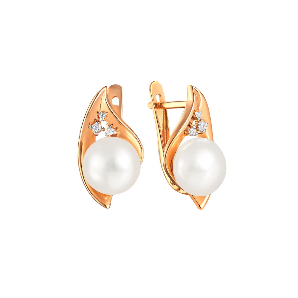 [NAME] => Серьги из красного золота с жемчугом и фианитами