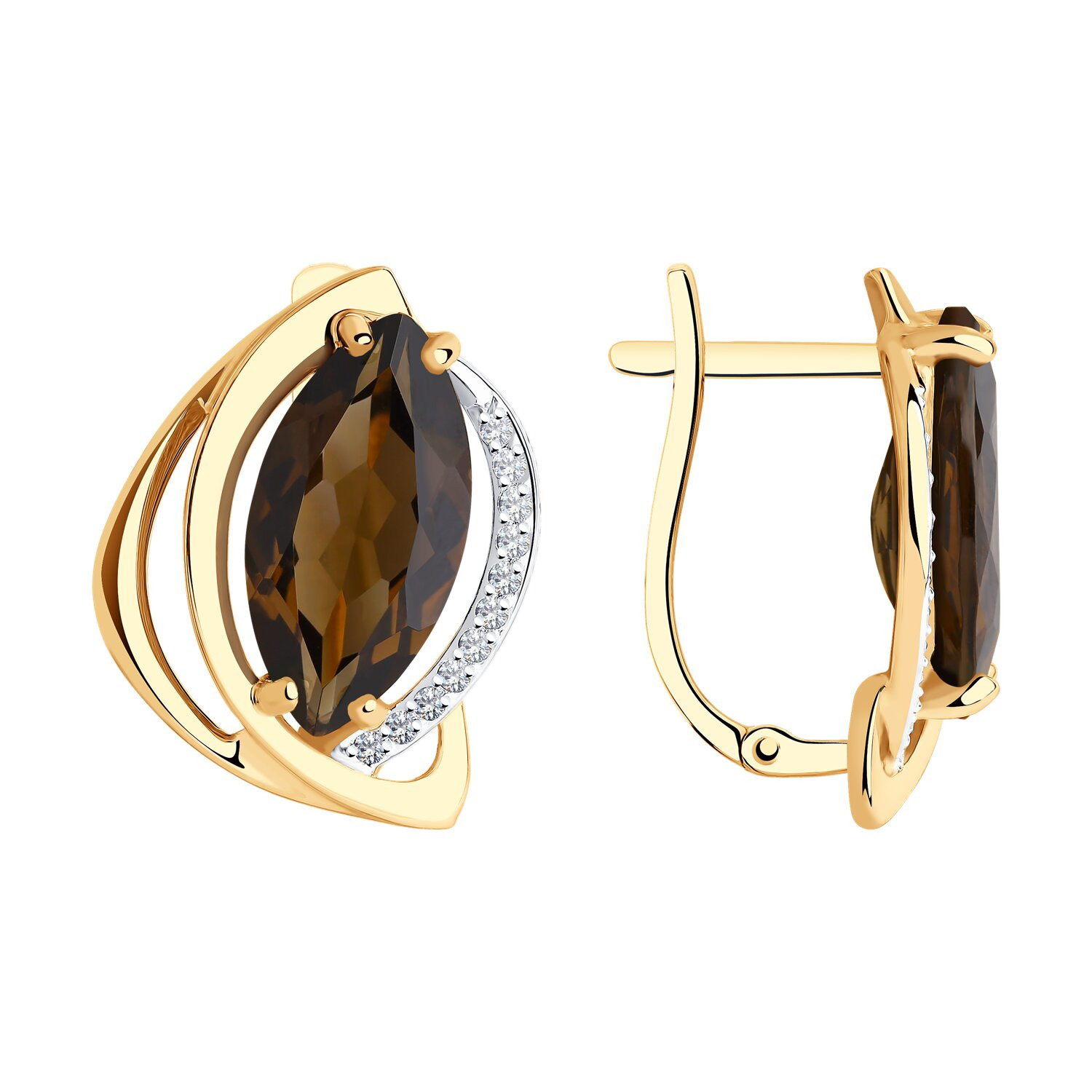 Серьги из красного золота с раух-топазами и фианитами 031799