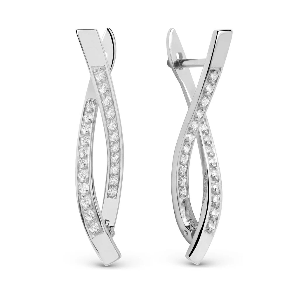 Серьги из белого золота с фианитами