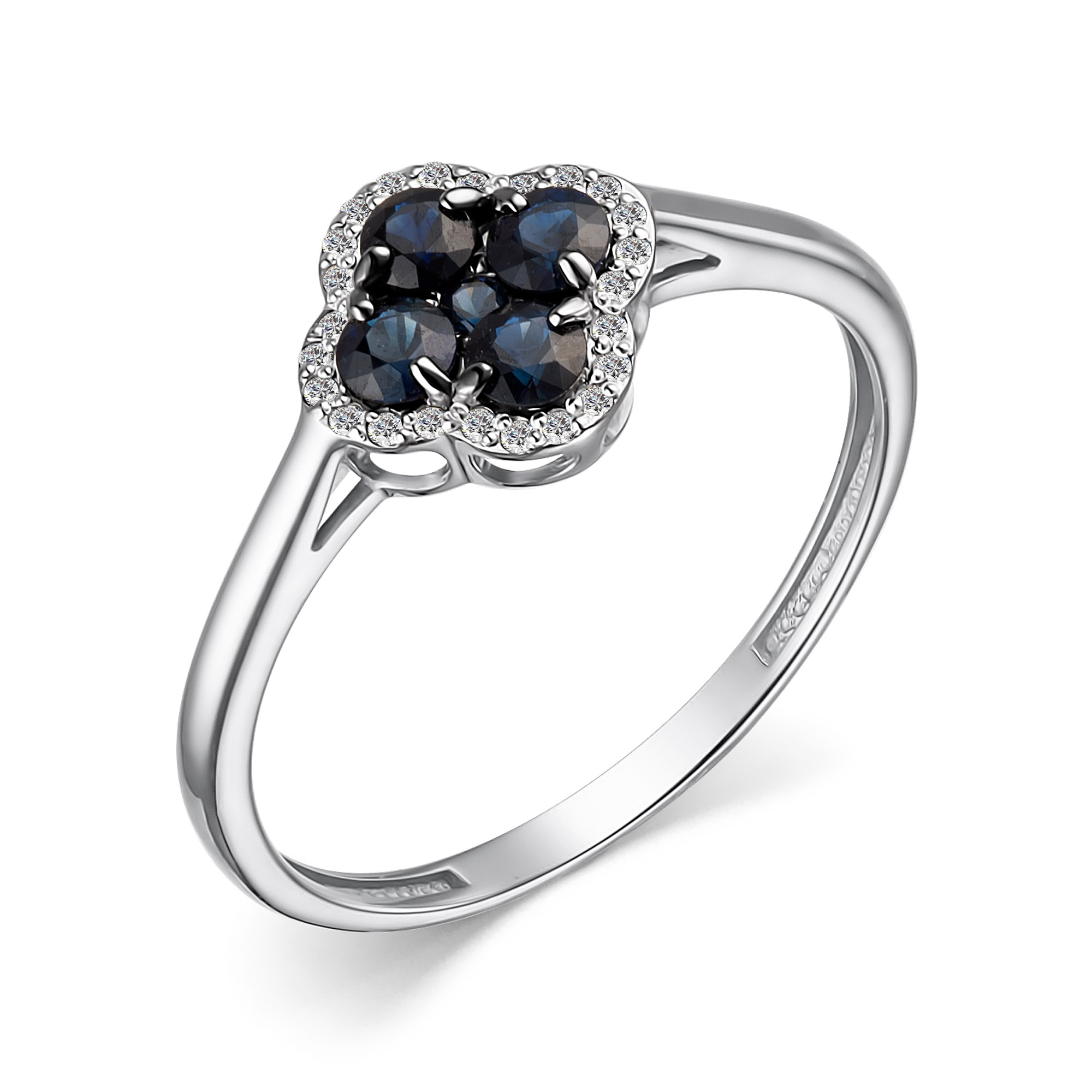 Кольцо из белого золота с сапфиром и бриллиантами