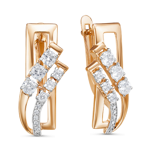 Серьги из красного золота с фианитами 107114