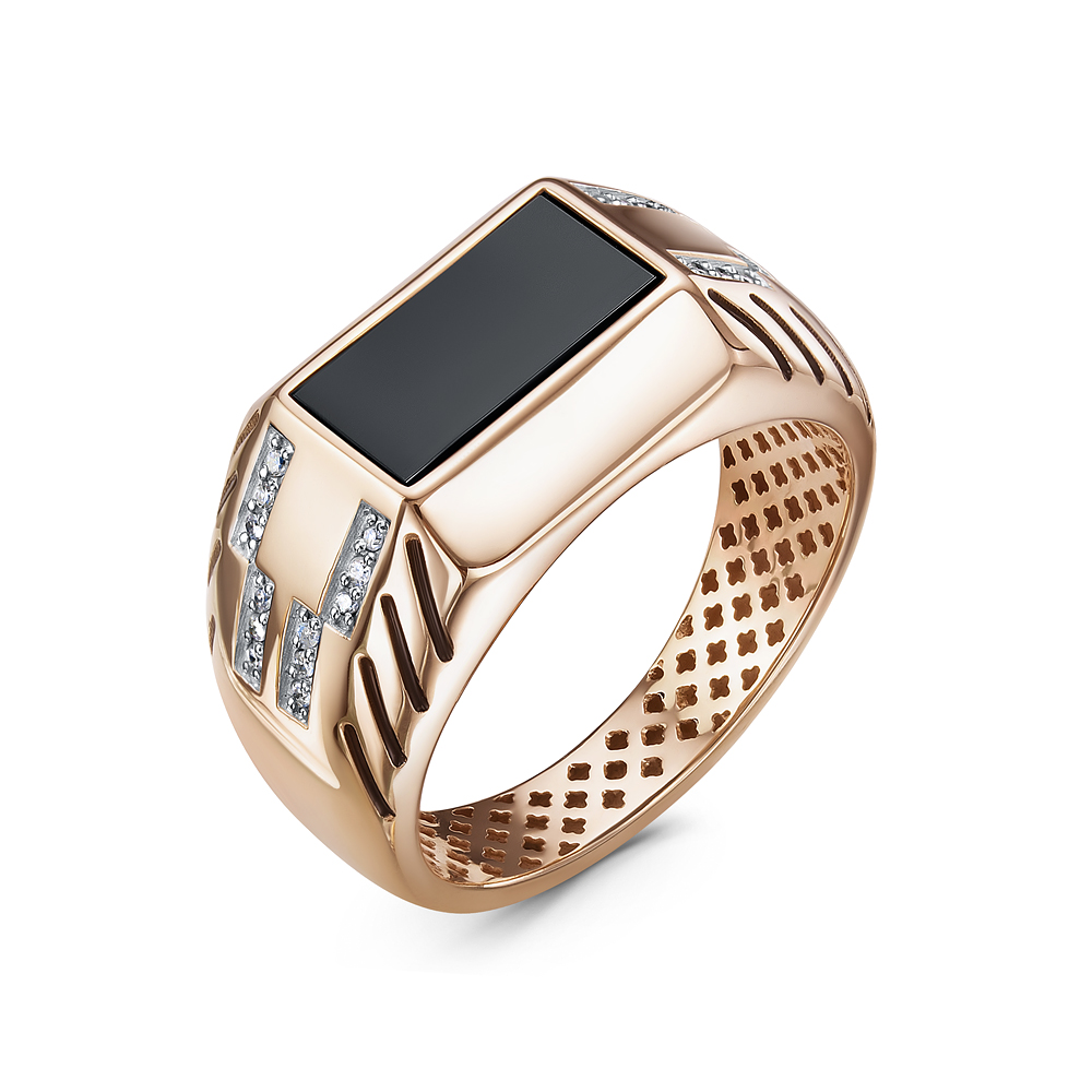 Печатка мужская из красного золота с ониксом и фианитами 122689