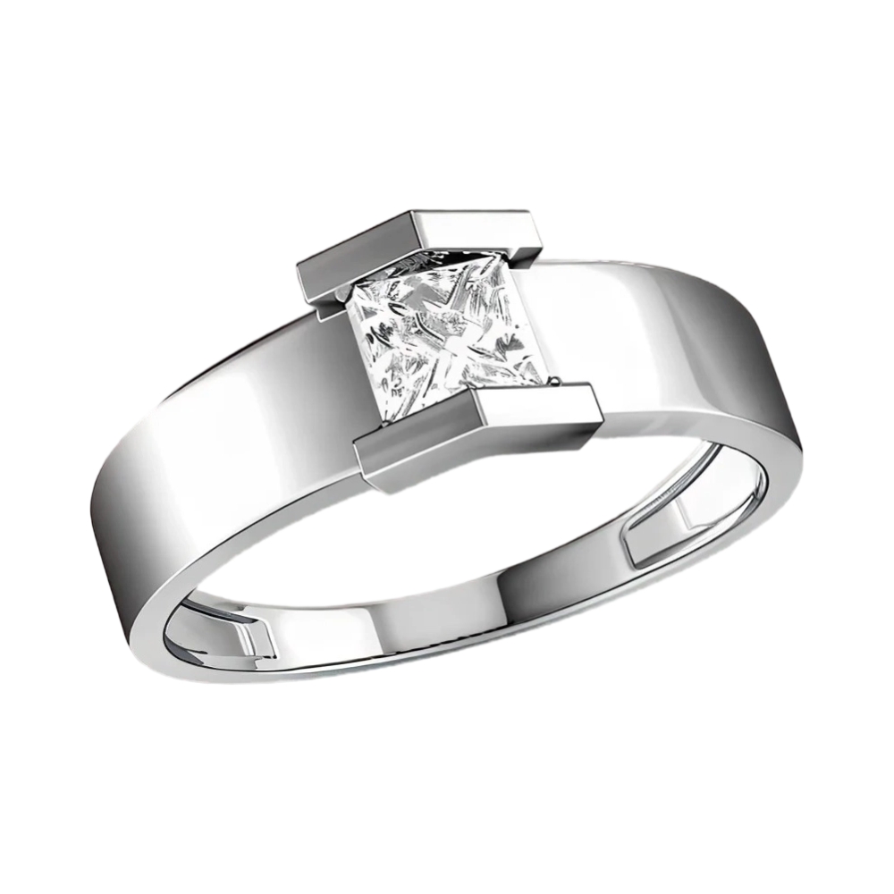 Кольцо помолвочное из белого золота с фианитами