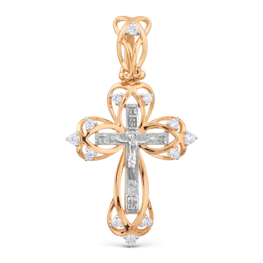 Крест из красного золота с фианитами