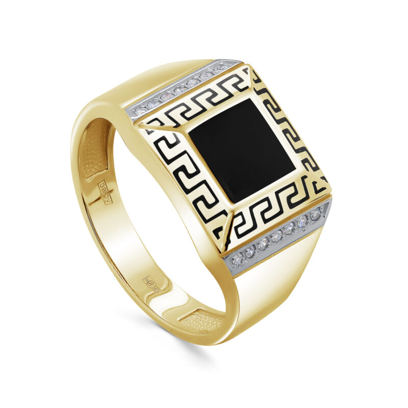 Мужская печатка из желтого золота с бриллиантами