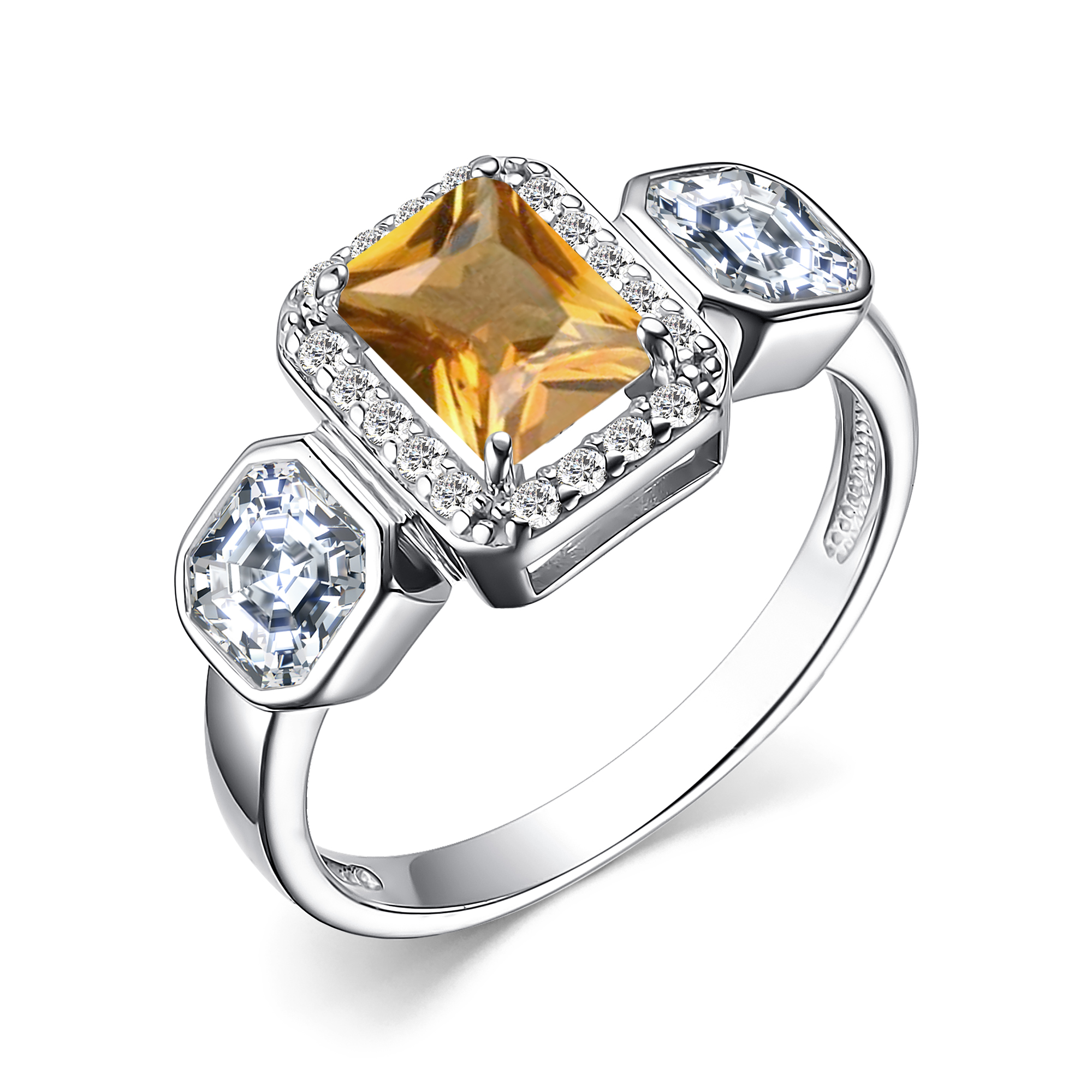 [NAME] => Кольцо из серебра с цитрином и фианитами