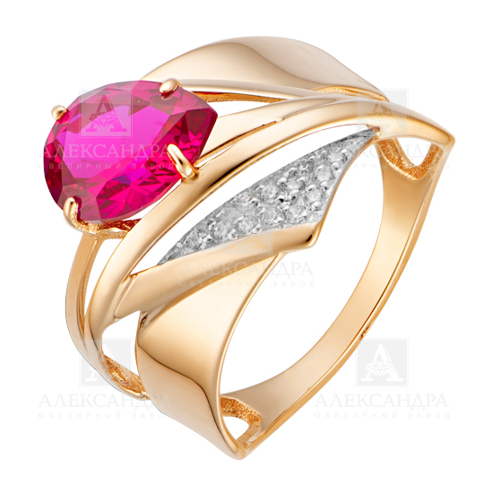 Кольцо из красного золота с гранатом и фианитами 139972