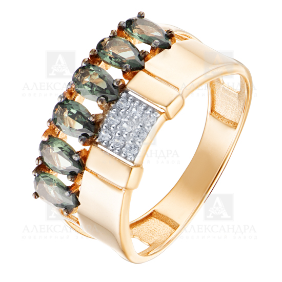 Кольцо из красного золота с раух топазами и фианитами 140024