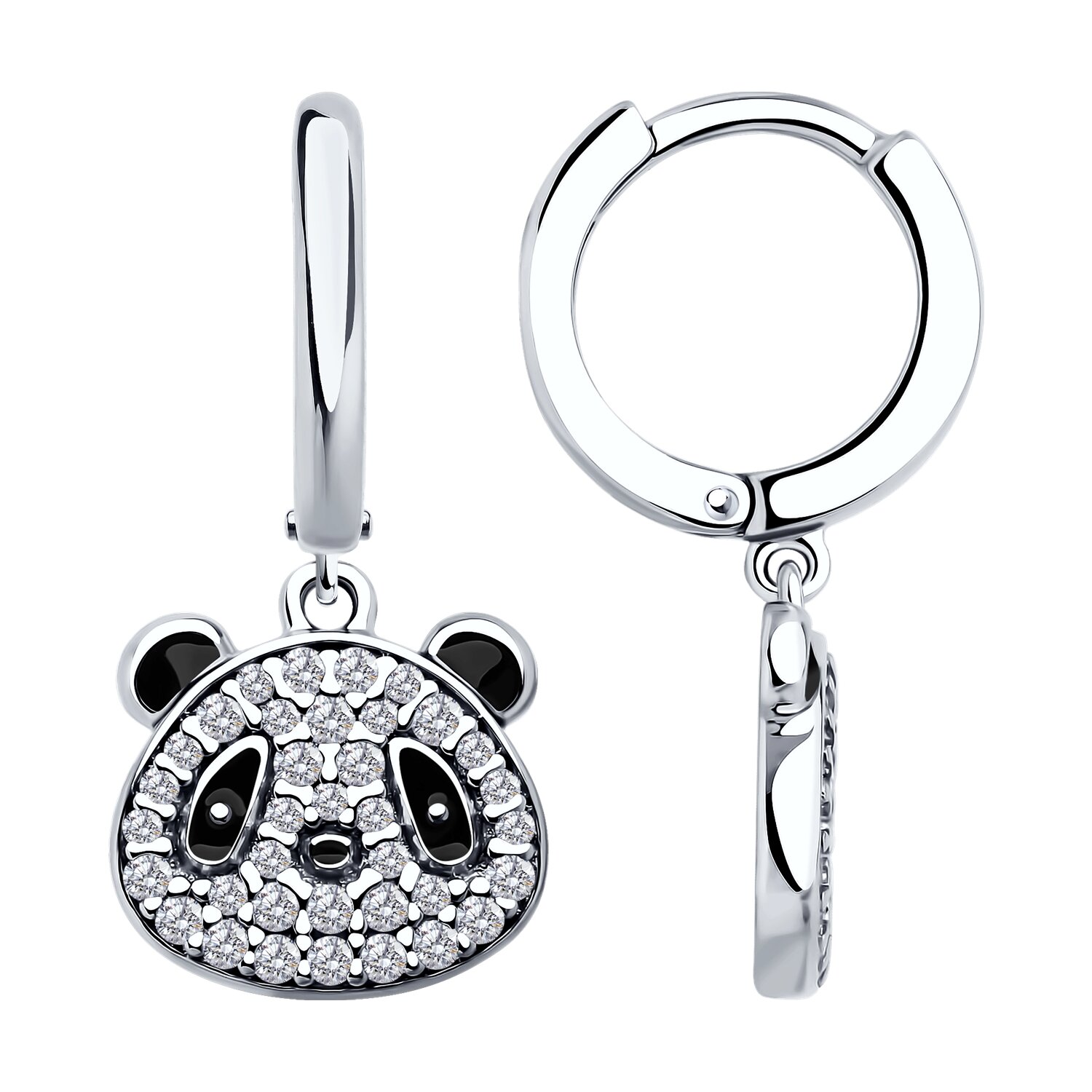 Серьги из серебра с фианитами и эмалью