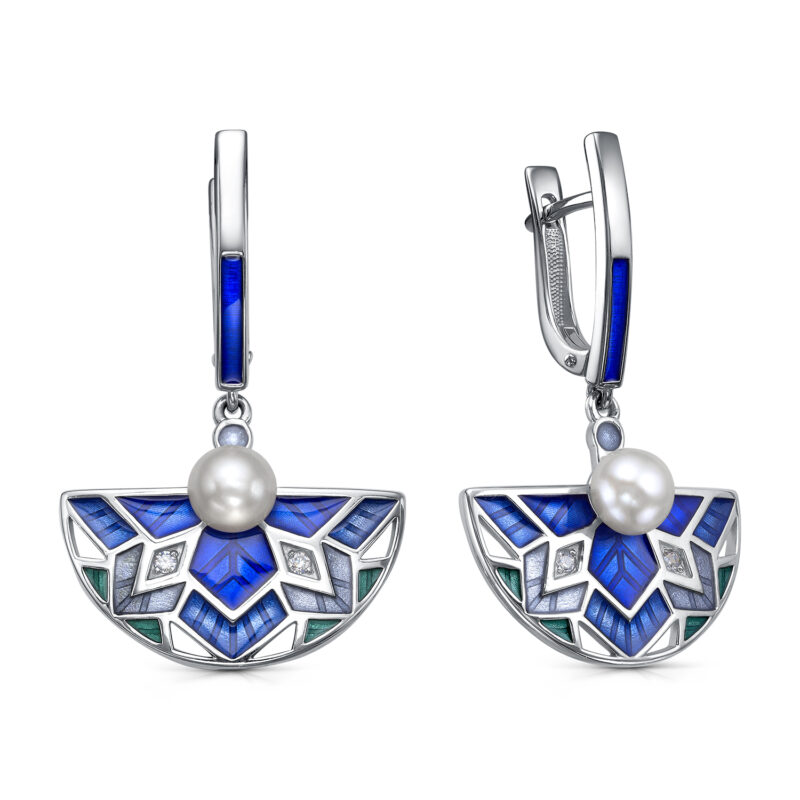 Серьги из серебра с жемчугом и фианитами