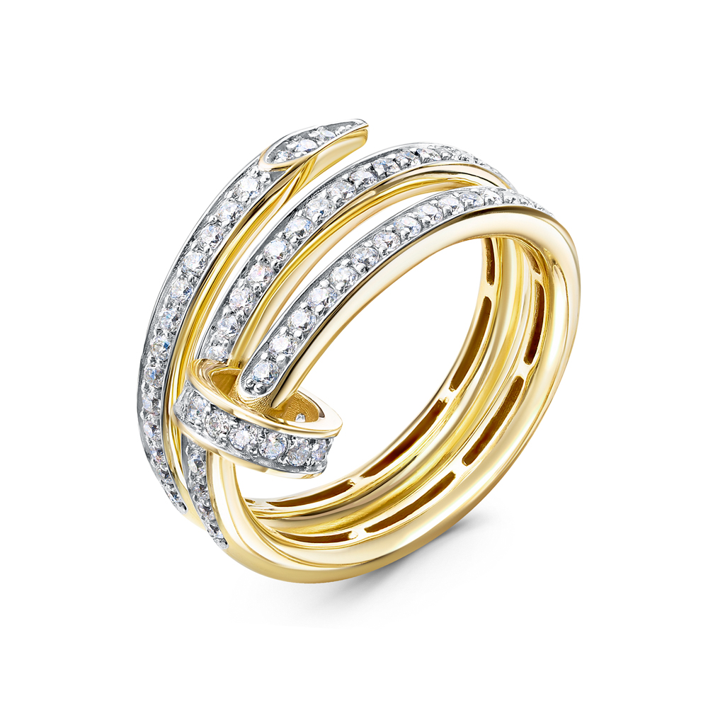Кольцо из желтого золота с фианитами