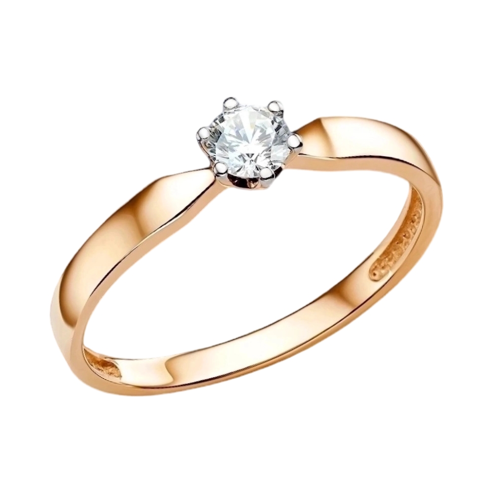 Кольцо помолвочное из красного золота с бриллиантом