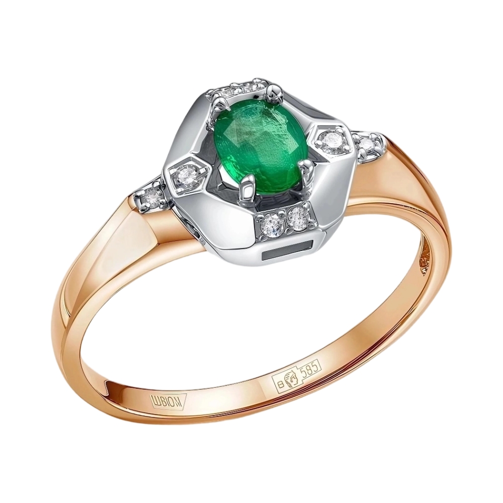 Кольцо из красного золота с изумрудом и бриллиантами 153714