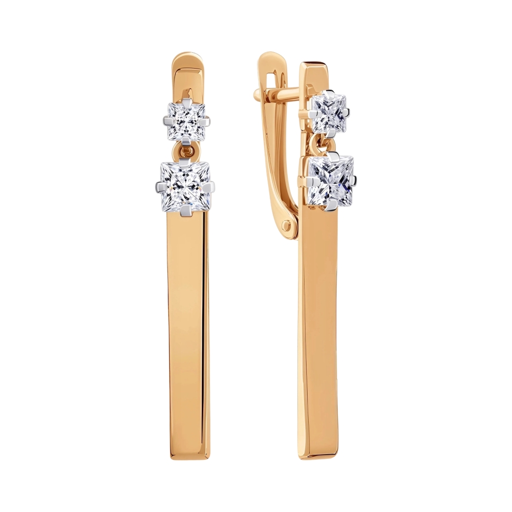 Серьги из красного золота с фианитами