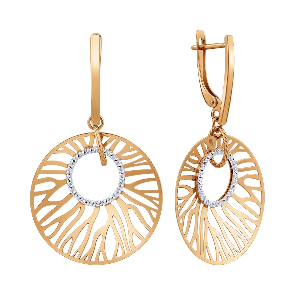 Серьги из красного золота с фианитами